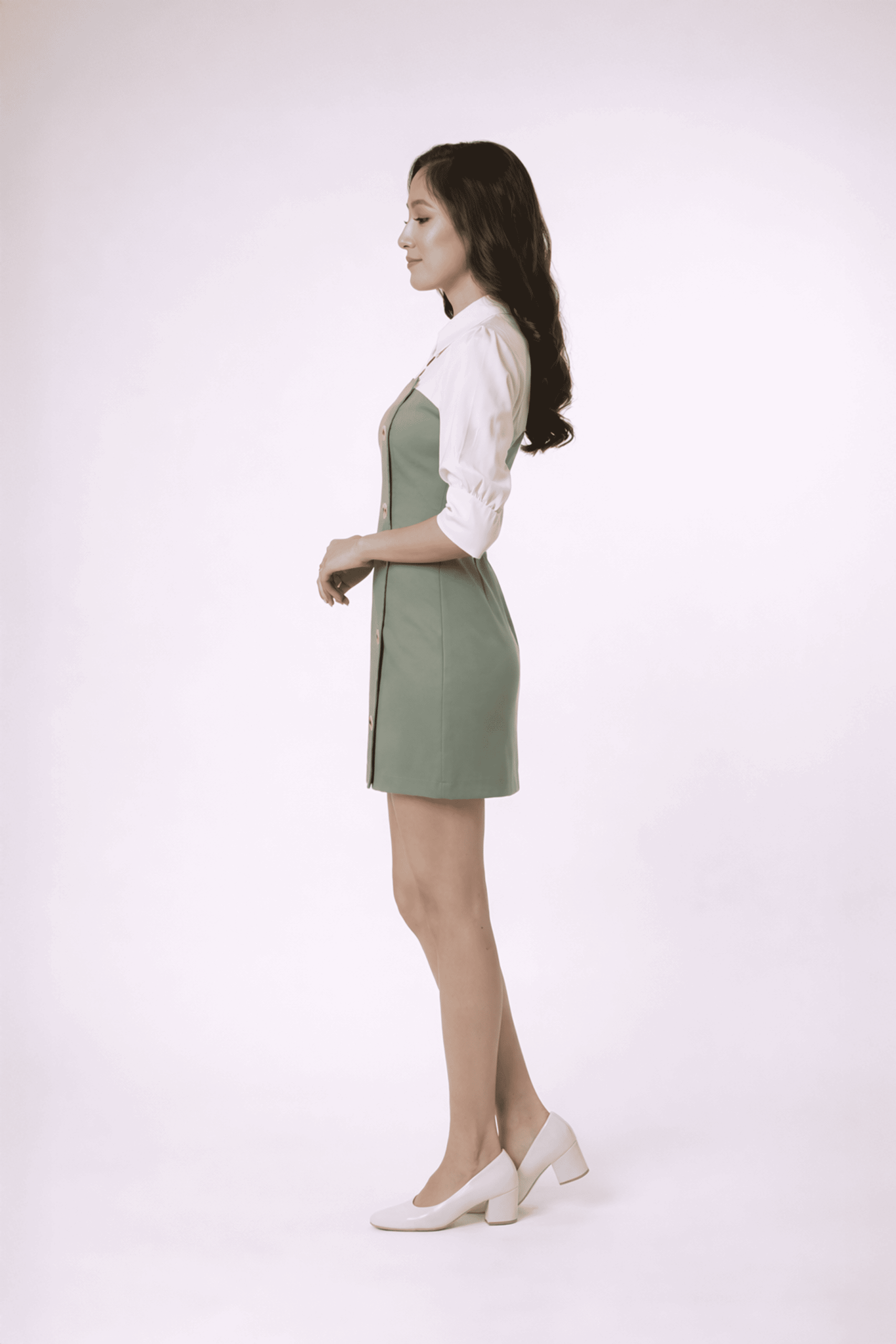 A multi-way silhouette crafted for versatility, this poplin mini dress transitions effortlessly between polished and casual moods. Designed with an inner elbow-sleeve shirt and a structured detachable wrap layer, the piece allows you to style it as a complete dress or wear the shirt separately with trousers for a relaxed, everyday look.