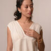 Top: Sits comfortably on the shoulders and bust, with a soft drape through the torso for an easy, elegant fit.