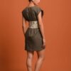 A quiet yet statement-making piece in viscose satin, this midi dress is designed with gathered detailing along the side, creating a soft contour that flatters without clinging. The silhouette sits between ease and structure, elevated enough for evenings yet effortless for everyday wear.
