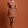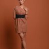 An elevated classic designed with soft structure and fluid ease. This 100% viscose midi dress features gently flared sleeves that create a subtle statement while maintaining a clean, refined silhouette. The waist is finished with a tonal belt featuring a metal buckle, adding definition without overpowering the look.