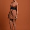 Playful structure meets modern elegance in this off-shoulder mini dress crafted from crisp 100% cotton poplin. The softly ruched neckline is gathered at the center with a delicate metal brooch, adding a subtle point of ornamentation.