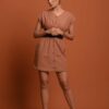 Finished with fabric-covered buttons and a hemline that sits slightly longer than a classic mini, this piece blends everyday comfort with refined structure.