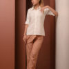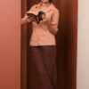 The wrap is shaped with a clean, structured form and features a smocked back for comfort and adaptability, fastening at the side with natural wooden buttons. The inner shirt includes its own button closure, keeping the look minimal yet functional. Worn together, the layers create a refined, sculpted appearance; worn apart, they offer endless styling possibilities.