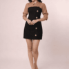 Playful structure meets modern elegance in this off-shoulder mini dress crafted from crisp 100% cotton poplin. The softly ruched neckline is gathered at the center with a delicate metal brooch, adding a subtle point of ornamentation.