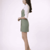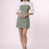 Finished with fabric-covered buttons and a hemline that sits slightly longer than a classic mini, this piece blends everyday comfort with refined structure.