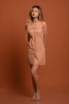 A clean, easy silhouette crafted in crisp cotton poplin, this halter-neck mini dress brings together effortless structure and everyday ease. The softly tailored neckline adds a modern touch, while the wooden button-down front keeps the look relaxed and versatile.