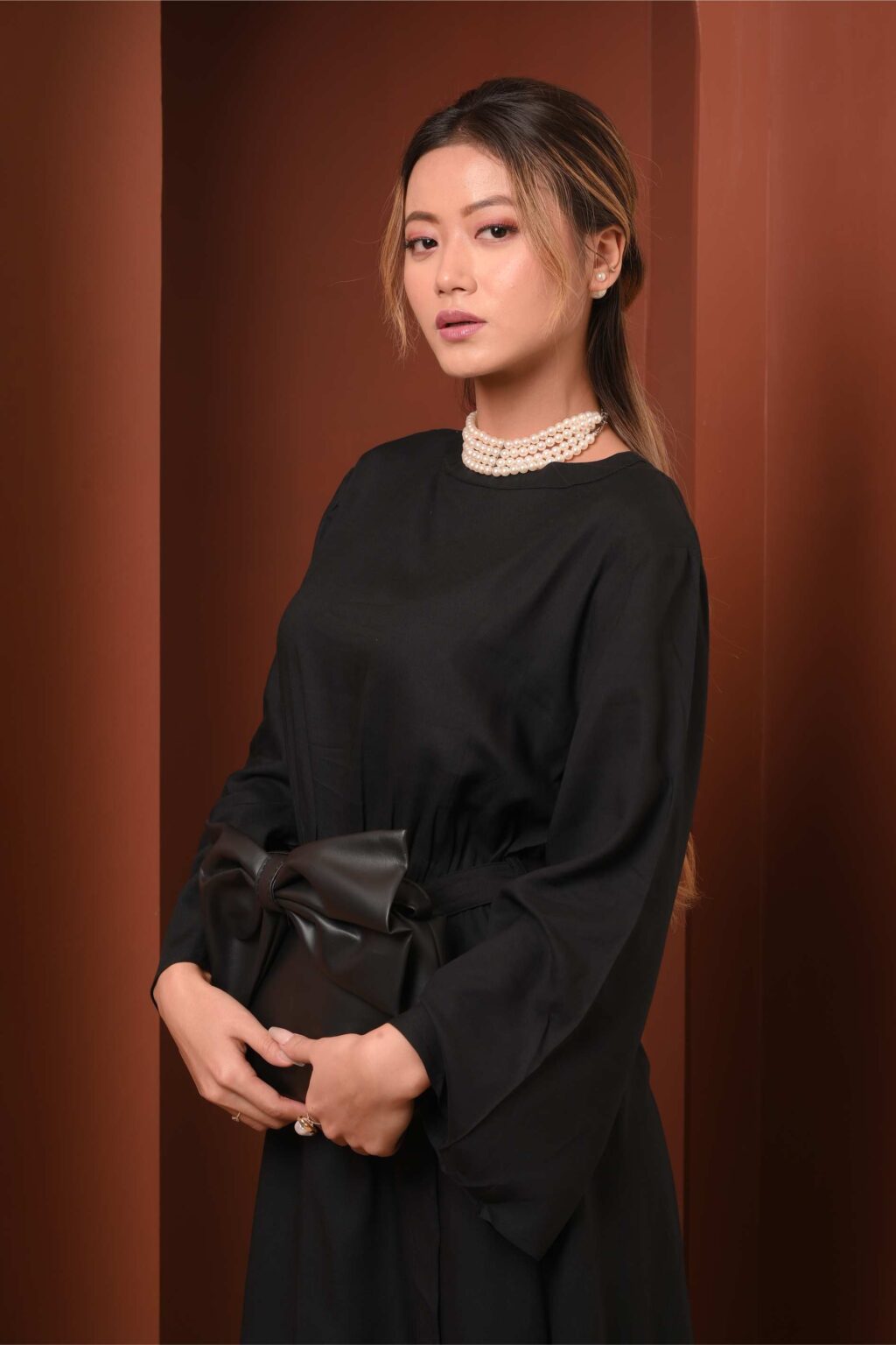 Flared long sleeves for a modern, graceful line