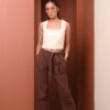 The cotton–linen trousers have an easy, slightly wide-leg shape with a detachable fabric belt for styling flexibility. Finished with a zip-button closure and functional front pockets, they strike a balance between comfort and quiet structure, ideal for both casual and refined settings.