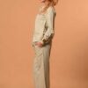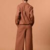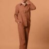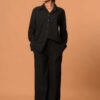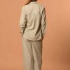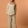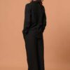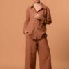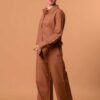 The matching wide-leg trousers create an easy, elongated line with smooth movement and practical side pockets. This set blends understated elegance with everyday functionality.