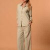 Crafted in a breathable 100% cotton–linen blend, this suit set brings a sense of refined ease to formal dressing. The blazer features a soft, clean cut with subtle structure, finished with wooden buttons and two functional patch pockets. The trousers follow a straight, relaxed line with side pockets for everyday practicality.